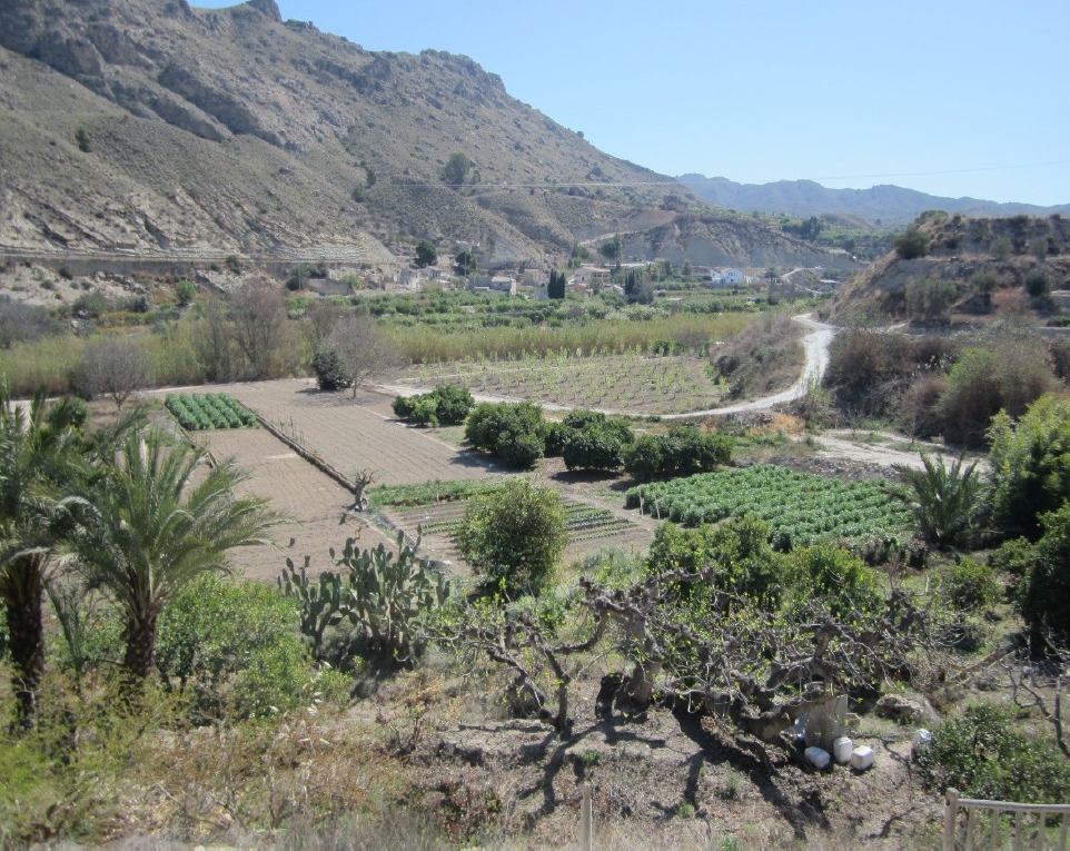 Figura 12 Huerta baja de Blanca amenazada por la expansión urbana y el embalse del Azud de Ojós.