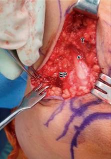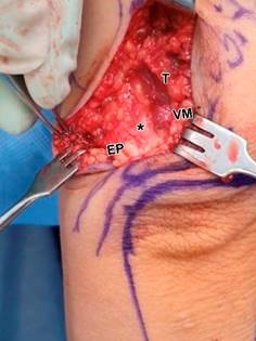 EP = epicóndilo medial. T = tríceps. VM = vasto medial.