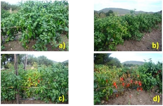 This disease is reported throughout Mexico, estimating losses up to 80% root rot to invade the vascular system of plants (González et al., 2009). Chemical control is the most used method to control the disease, it is common to reduce the inoculum by disinfecting the soil with Metam Sodium, fungicide applications are also made with the active ingredients 2Tiocianomethyl (TCMTB), Metalaxyl, Azoxystrobin and Propanocar to control P. capsici (Pérez et al., 2003), R. solani and Fusarium spp., are controlled with Tebuconazole, Carbendazim, Thiabendazole and Methyl Thiophanate (Yossen and Conles, 2014).