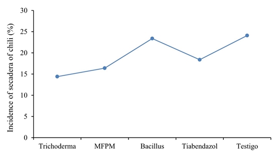 Table 1 Incidence of the disease (%) in serrano chili with respect to each treatment.
