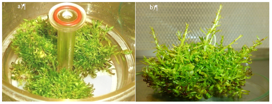 This occurs when removing the first sprouts that differentiated, since apparently these exert an apical dominance that stops the differentiation of other sprouts. In this way, in a culture container, continuous production can be maintained for up to 200 d. On the other hand, these sprout masses can be inoculated in a temporary immersion bioreactor, as described below, where the differentiation and growth of the sprouts will occur simultaneously, without the delay and asynchrony due to apical dominance observed in the semi-solid medium.