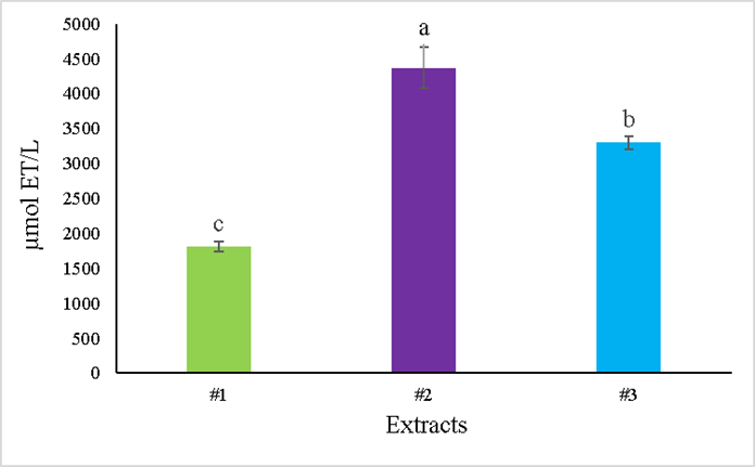| Extract #2 | 1.57a | 1.10a | 0.94b | 1.36b | 1.49c |