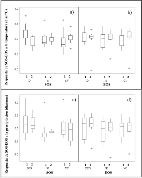 Tasas de respuesta del SOS y el EOS a la temperatura y la precipitación