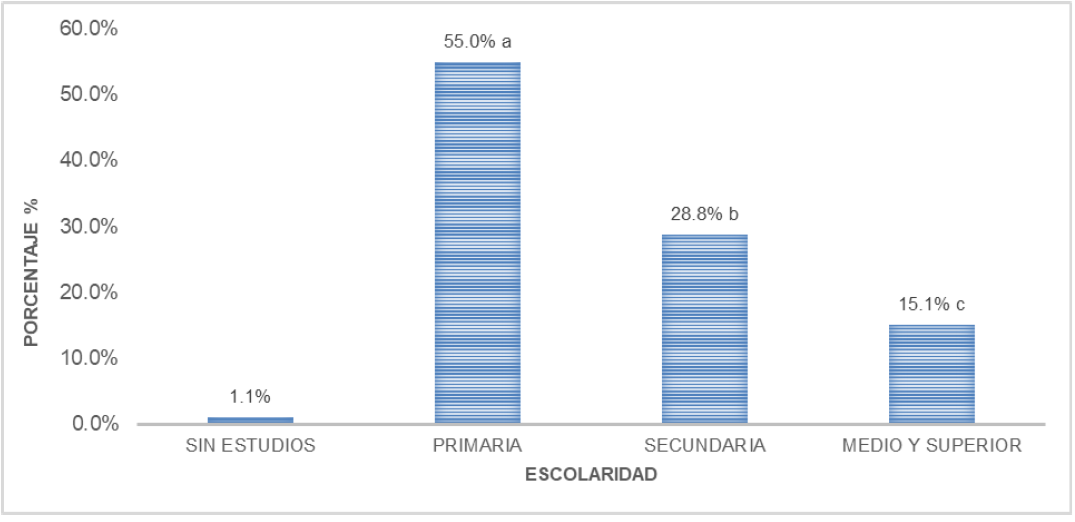 Figura 1 Escolaridad de los productores del sistema de lechería familiar de Aguascalientes, México
