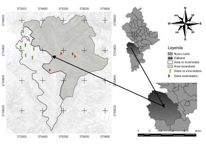 The authors would like to express their appreciation to the Consejo Nacional de Ciencia y Tecnología (National Science and Technology Council) (Conacyt) for granting of the scholarship for the studies that support this contribution and to the Universidad Autónoma de Nuevo León (UANL) for financing fieldwork through the Project :"Evaluación multitemporal de los procesos de recuperación de ecosistemas forestales sometidos a incendios" (Multitemporal evaluation of the processes of recovery of forest ecosystems subjected to fires) of the Programa de Apoyo a la Investigación Científica y Tecnológica PAICYT 2011 -CT 310-10 (Support Program for Scientific and Technological Research PAICYT 2011 -CT 310-10).