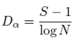 As Dα has a higher value, there is a greater richness of species. Lower values than 2 are taken as zones of low biodiversity and over 5, of high biodiversity.