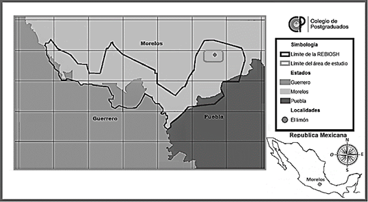 The study was carried out in the El Limón de Cuauchichinola ejido, in Tepalcingo de Hidalgo municipality, which is located in the southeast of the state of Morelos, Mexico, at 18°32' N and 98°56' W, at 1 220 m high. It has 4 236 ha, of which 1 970 ha are forested lands; It is part of the Sierra de Huautla Biosphere Reserve (Figure 1).
