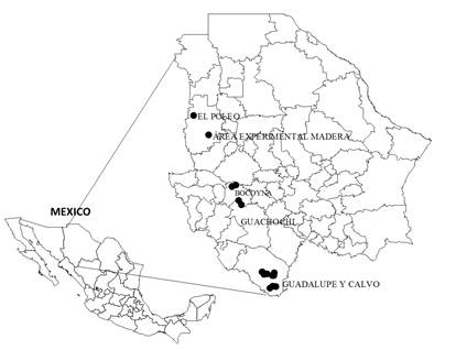 It should be noted that, during the years 2007, 2013 and 2014, 3 669 permanent sites were delimited, in 14 states of the Mexican Republic, which include those of Chihuahua, in whose temperate forests 857 sites were located. This effort was developed by the National Forestry Commission (Conafor), with the support of the Universidad Juárez del Estado de Durango (UJED) for the storage of information online, using the system called Monafor (Nava-Miranda, 2014).