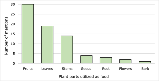 Figure 6 Number of mentions of the plant parts used as food in the rural area of Linares municipality, Nuevo León, Mexico.