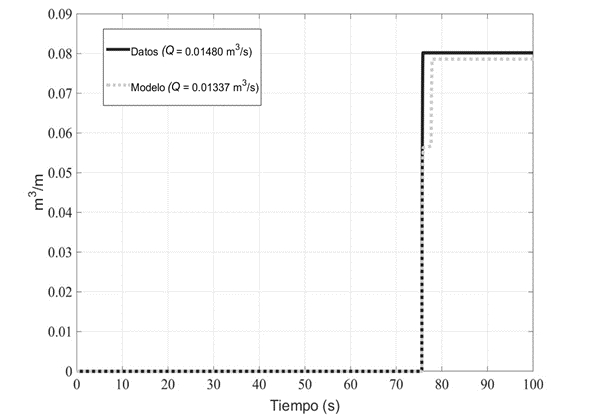 Figura 11 Comparación entre el modelo numérico y mediciones de laboratorio del rebase instantáneo.