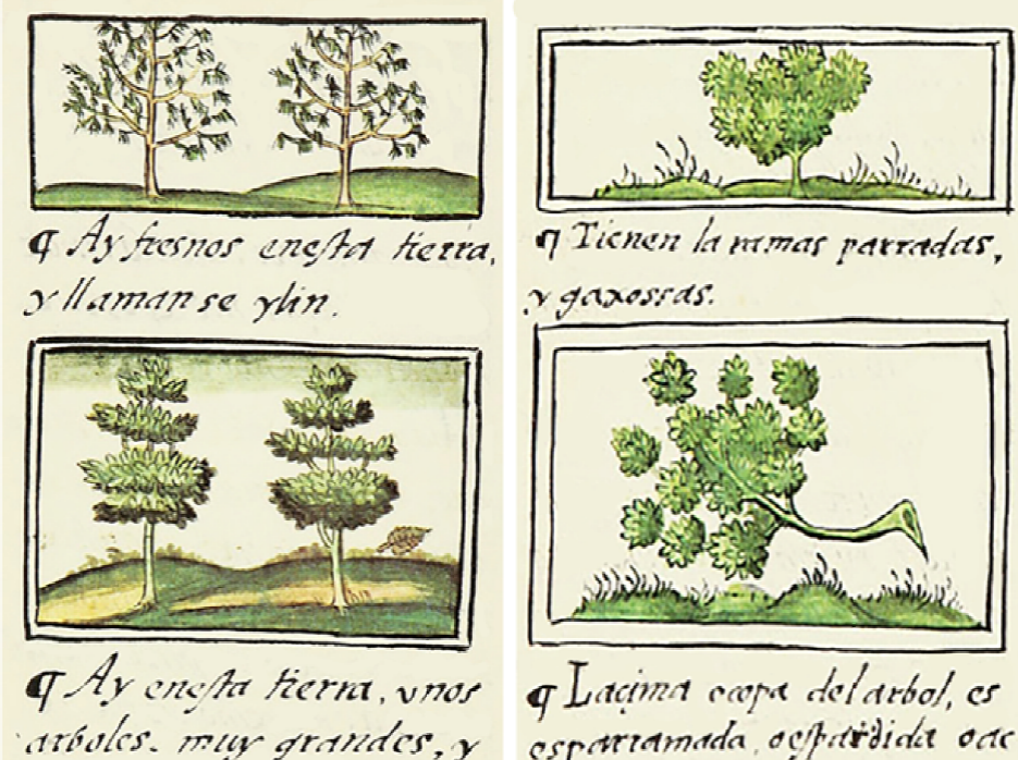 Figure 4 Florentine Codex. Tree species in the Valley of Mexico.