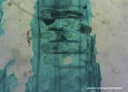 It can be said that this physical deterioration is related to the chemical one, since in many cases the hydrolyzed structures pre sent deformations, cracks or fractures, as well as partial or total loss. Dimensional and morphological changes have also been observed in some of the objects, which probably caused various surfaces to lose their layer of decoration. Though biological deterioration has been observed sporadically, it is the least common in relation to the collection as a whole, and is very likely due to the anaerobic conditions of their contexts. Nonetheless, evidence of biological attack has been registered on certain occasions: the presence of mycelium (hyphae in the cellular tissue) as well as stains and galleries caused by xylophagous insects (Figure 1).