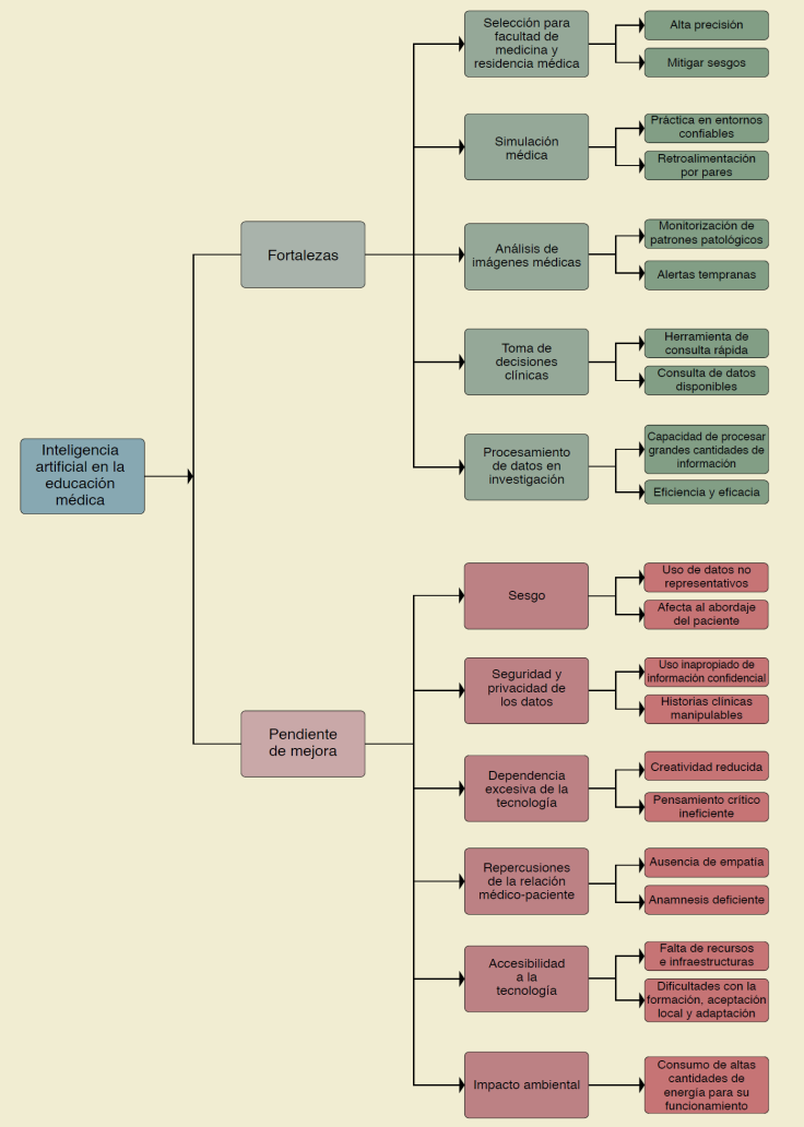 La integración de la IA en la educación médica ha generado un amplio debate sobre sus implicaciones positivas y negativas para el futuro de la atención médica. Esta revisión tuvo como objetivo sintetizar las ideas clave y las implicaciones de la adopción de la IA en la educación médica, arrojando luz sobre el panorama en evolución e identificando áreas de preocupación y posible mejora.