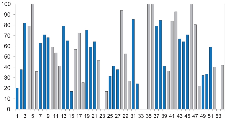 | Distingue pares de igual categoría | 1 | 0.1 | 148 | 2.7 | ||