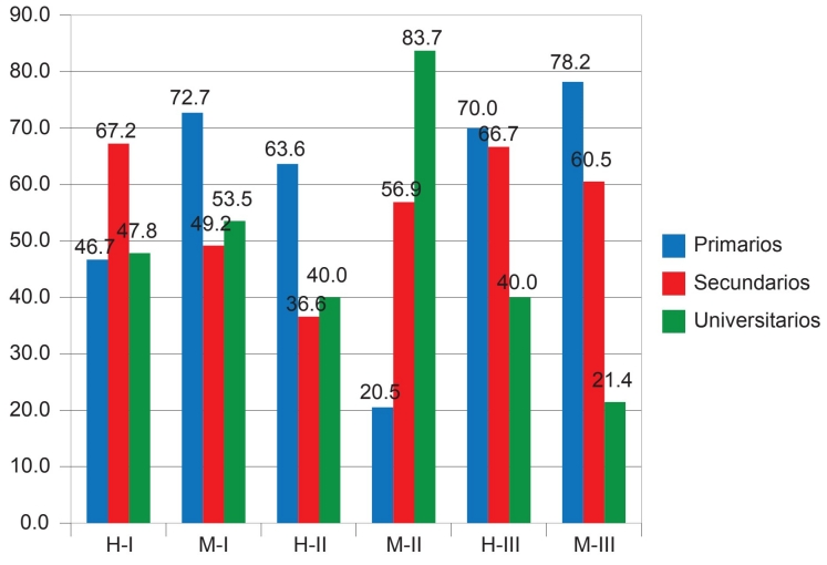 | Realización plena | 4245 | 77.75 | 3072 | 73.79 | 1237 | 65.28 | 349 | 38.65 |