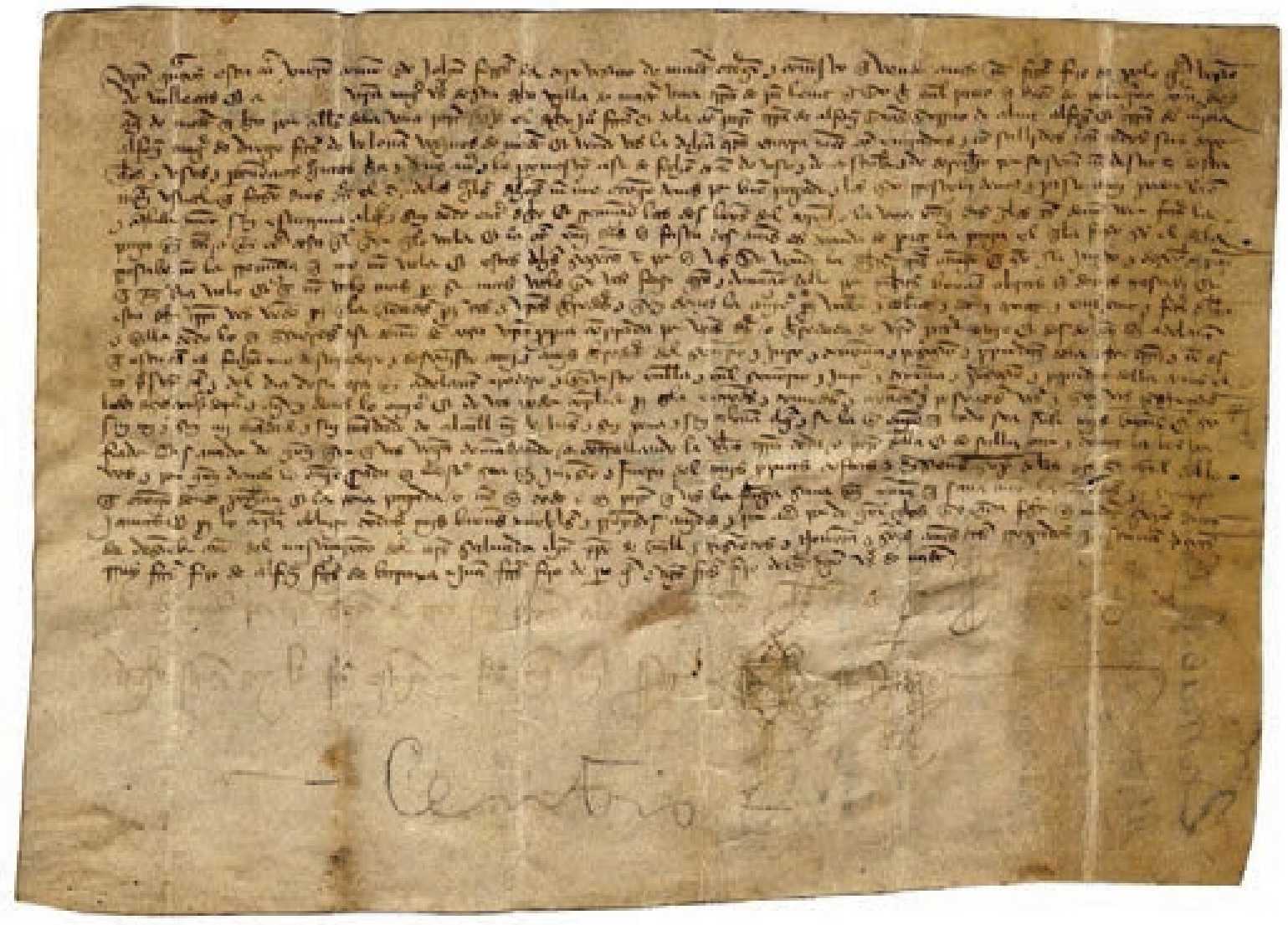 A continuación, y como ejemplo de todo lo expuesto previamente, les incluimos la edición múltiple de un documento específico: en primer lugar, hemos incorporado el facsímil en color, en segundo término, la transcripción paleográfica de ese texto y por último, la presentación crítica. El documento, de 1396, es un documento inédito transcrito por María Jesús Torrens, coordinadora del grupo de investigación del CSIC.8
