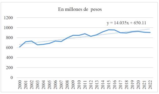 Figura 2 Gasto público per cápita en educación en México en dólares 2000-2023