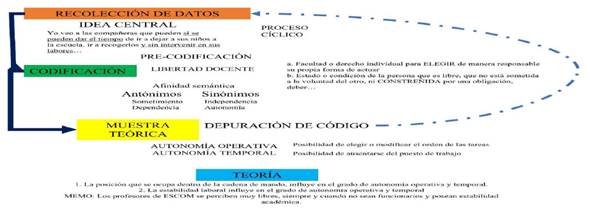 3. Autonomía docente: Dentro del valor nominal del profesor de ESCOM se encuentra la independencia percibida en el ejercicio de sus funciones, la cual, pese a ser descrita en términos de un laissez faire directivo, es significativamente relevante para el académico. Sin embargo, se considera que pese a dicha “autonomía”, el control de los profesores está determinado por los criterios que, institucionalmente, se disponen para evaluar el desempeño docente como vía para la mejora de su condición laboral.