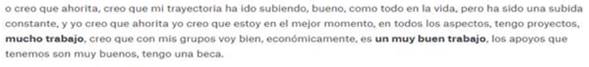 través de la resolución de problemas. Cuenta con tolerancia a la frustración, así como con múltiples recursos (alianzas académicas, familiares, profesionales) que facilitan la orientación hacia la meta, así como fuentes de motivación para modificar la situación laboral. |