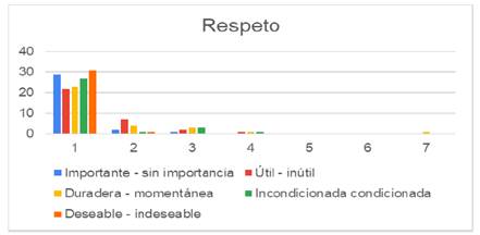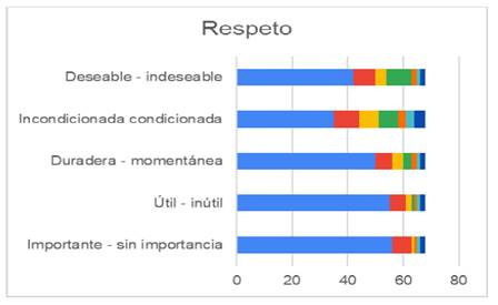 En los estudiantes de la Licenciatura de Ingeniero Agrónomo en Producción al analizar la información de la encuesta sobre los valores, aproximadamente el 55%, consideran que el respecto es importante y útil, mientras que el resto manifestaron que debe ser duradero y deseable durante su formación como Ingenieros Agrónomos.
