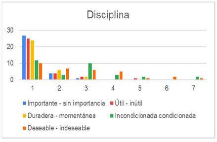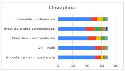 Con respecto a la disciplina los estudiantes de ambas instituciones coinciden que es importante, deseable y duradera, durante su estancia y desarrollo profesional en la institución educativa, de los alumnos encuestados de ambos programas educativos fue cerca del 80%.
