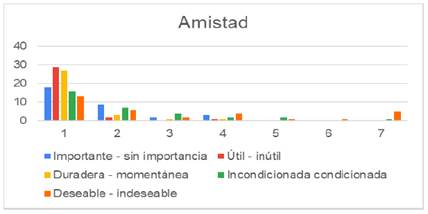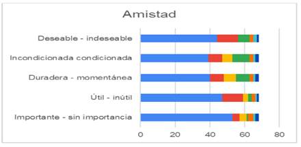 En las Figuras 13 y 14, se observa el comportamiento de los resultados del cuestionario que se les aplico a los estudiantes de ambas licenciaturas con respecto al valor de amistad.