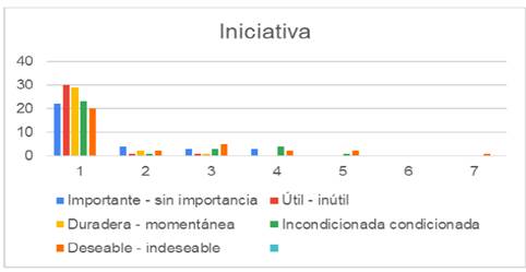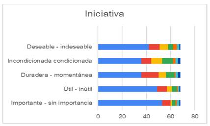 En las figuras 15 y 16, se visualiza la percepción de los estudiantes de ambas licenciaturas después de aplicar el cuestionario sobre el valor iniciativa.