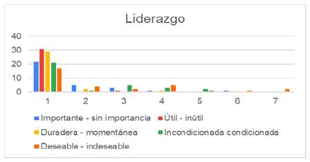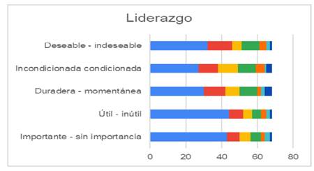 En las figuras 17 y 18, se presentan los resultados que arroja sobre la percepción de los estudiantes de ambas licenciaturas con respecto al valor de liderazgo.