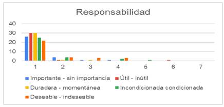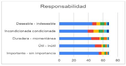 Como se puede apreciar en la figura anterior cerca del 85% los estudiantes Ingeniería en Agronomía para la Producción Sustentable, al preguntarles sobre la responsabilidad, ellos consideran que es útil, duradera, importante, durante su preparación y desarrollo en vida académica y profesional.