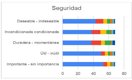 En las figuras 21 y 22 se presenta los resultados sobre la percepción de los estudiantes de ambas instituciones cuanto se les preguntó sobre el valor de la seguridad.