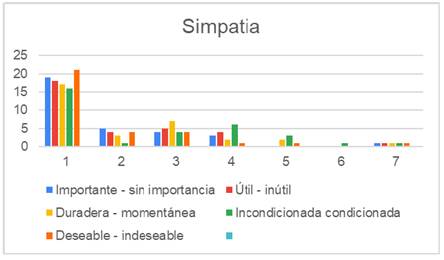 En las figuras 23 y 24, se presentan los resultados sobre la percepción de los estudiantes de ambas licenciaturas cuando se les preguntó sobre el valor de la simpatía.