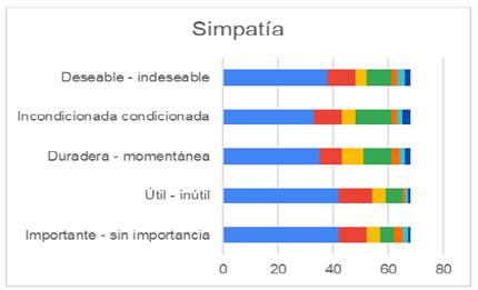 La simpatía como valor de una persona, el 75% de la percepción de los estudiantes de Ingeniería en Agronomía para la Producción Sustentable en su mayoría de los encuestados consideran como deseable, importante, útil, y es una cualidad que facilita las relaciones interpersonales, promoviendo la amabilidad, la comprensión y la disposición de ayudar a los demás, que debe ser distintivo de un Ingeniero Agrónomo.