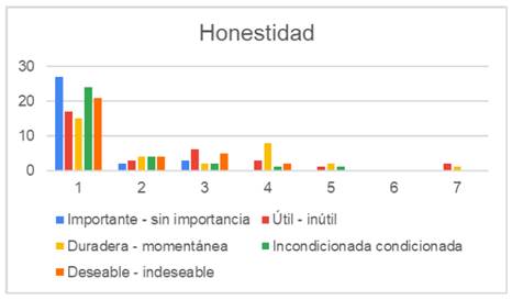En las figuras 5 y 6 se muestran los resultados sobre el valor de la honestidad entre ambas licenciaturas.