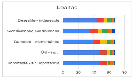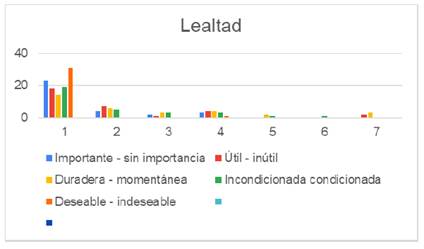 En las figuras 7 y 8 se evidencia el comportamiento de las respuestas de los alumnos sobre el valor de lealtad en ambas licenciaturas.