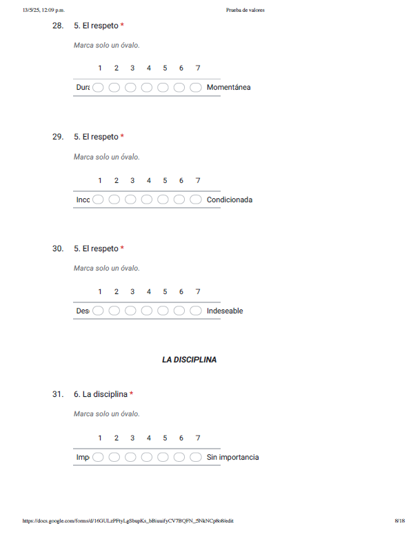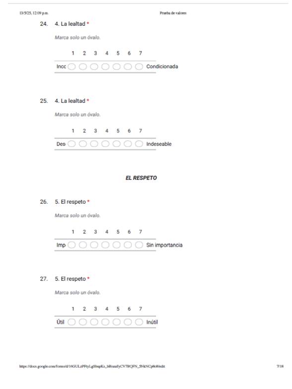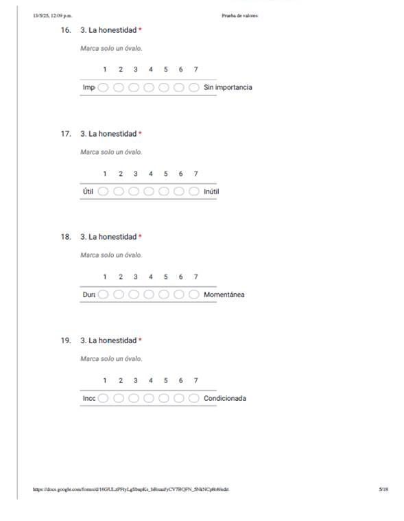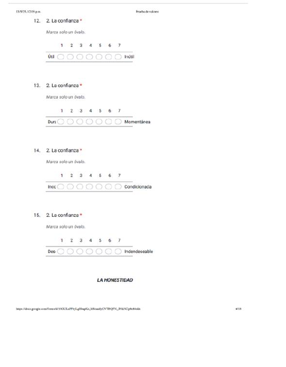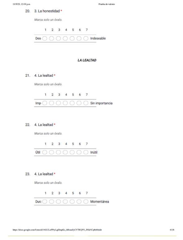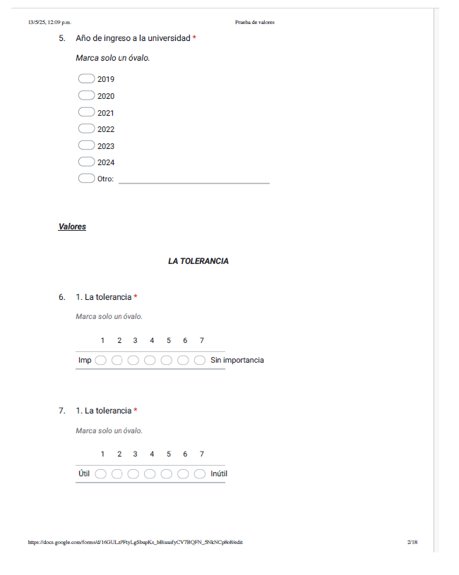 La herramienta que se utilizó consistió en aplicar un cuestionario elaborado en Google Formularios y cada Coordinador de Licenciatura cuenta con grupos de “WhatsApp” por grado académico, se le proporciono el link, y a los estudiantes de ambos programas de estudio, se les solicito el apoyo para contestar el cuestionario sobre valores, colocando el año de ingreso a la Universidad, así como los valores a considerar, tales como: la tolerancia, la confianza, la honestidad, la lealtad, el respecto, la disciplina, la amistad, tener iniciativa, ser líder, la responsabilidad.