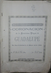 ¡¡Reine en Chiapas Santa María de Guadalupe!! ¡Aleluya, aleluya! ¡Alegría, alegría! Exclama a la Santa Iglesia católica llena de regocijo al contemplar que hermoso y resplandeciente, se llevará al sepulcro Cristo Jesús, Nuestro Divino y Adorable redentor todas las angustias de la Pasión. ¡Alegría, alegría! Debemos exclamar todos los habitantes de Chiapas, al considerar que ya se acerca el día hermoso y radiante, tantas veces deseado, en que la Augusta madre de Dios, con la dulcísima advocación de Guadalupe, fijará de manera especial su Reinado entre nosotros. Aquel día en que, al colocar sobre sus Benditas Sienes la corona, símbolo de nuestro amor y vasallaje, la reconocemos como nuestra Reina y Madre, en justa correspondencia a los favores que nos ha dispensado, y que desde el 12 de mayo, seguirá derramando con mayor abundancia. Si alegrémonos santamente en el señor. Seamos agradecidos a los beneficios que nos concede. Procuremos aprovechar los beneficios espirituales que en los días de preparación a la gran solemnidad de la Coronación, se nos prodigaran. ¡Felices de nosotros, si para que el 12 de mayo de 1931 quede endeblemente grabado en nuestros corazones, nos preparamos bien a fin de que el reinado de la Sma. virgen de Guadalupe produzca en nosotros los frutos que nuestra tierna Madre y Reina ardiente desea!17