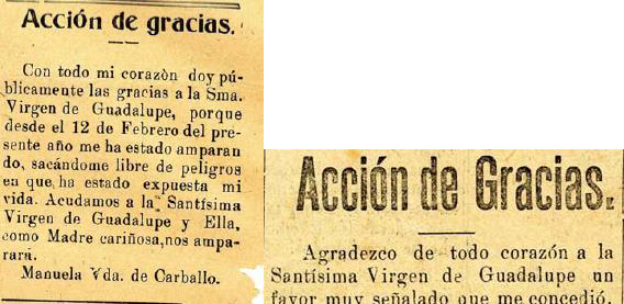 Figura 7 Ejemplos de acciones de gracias o exvotos textuales encontrados en el boletín guadalupano