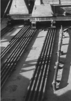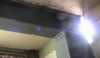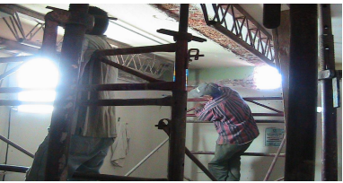 Debido a la inaccesibilidad hacia el edificio rodeado ya de otros inmuebles en plenas funciones, las vigas metálicas que reforzarían la losa de entrepiso del edificio tuvieron que ser introducidas a través de pequeñas aperturas en los muros.