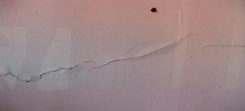 Eran evidentes las grietas en el yeso de los muros y en el mortero, así como las del recubrimiento cerámico, separación del zoclo del nivel de piso y crujidos.