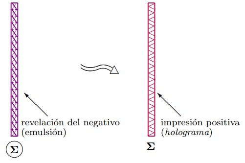 Revelación del holograma. Enseguida, se revela (trabajo en laboratorio) el negativo de la información transmitida del objeto (Figura 3).