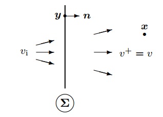 donde σ=σy es un coeficiente de transmisión, con 0σy1, de forma que σy=1 corresponde a lugares absolutamente transparentes sobre Σ, mientras que σy=0 corresponde a lugares absolutamente opacos sobre Σ.