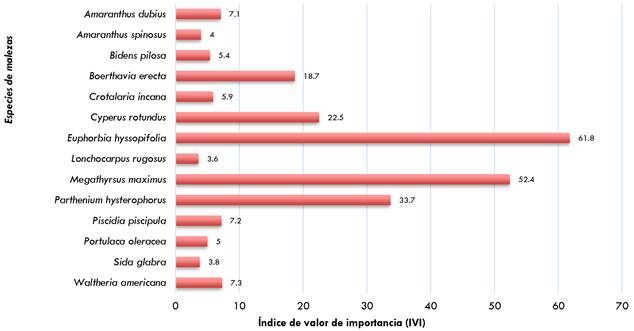 Figura 3 Valores de importancia relativa (VIR) de la maleza, asociadas al cultivo de chile habanero.