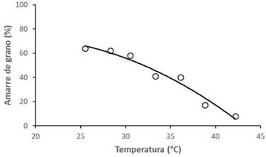 Figura 3 Efecto de la temperatura extrema en el porcentaje de amarre de grano (adaptado de Lonnquist y Jugenheimer 1943).