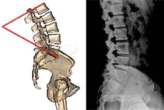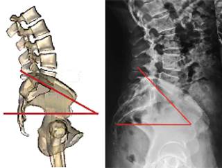 El ángulo de pendiente sacra permite determinar la magnitud de la lordosis lumbar ya que éste determina la magnitud de su curvatura; es decir, a menor pendiente, menor lordosis y a mayor pendiente mayor lordosis. Observe en la Figura 13 los efectos de la pendiente sacra en la magnitud de la lordosis lumbar.