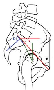 La incidencia pélvica se puede calcular por la ecuación de Legaye,36 la cual postula que la incidencia pélvica es igual a la versión pélvica más la pendiente sacra.