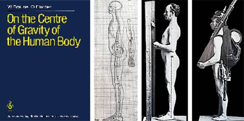 Los pioneros en el estudio del centro de gravedad del cuerpo humano fueron Wilhelm Braune y Otto Fischer23 quienes, en 1889, publicaron un libro en el que se describen matemáticamente cuáles son los centros de gravedad de cada uno de los segmentos del cuerpo humano, utilizando preparaciones cadavéricas (Figura 5). Estas investigaciones tuvieron entre otros objetivos el estudiar con fines militares el equipamiento y la exactitud en los disparos del ejército alemán con base en sus centros de gravedad y equilibrio. Desde entonces y hasta el momento actual se aceptan prácticamente por consenso los centros de gravedad propuestos por estos autores. En este manuscrito nos referiremos exclusivamente a los centros de gravedad y equilibrio sagitales, omitiremos los del plano frontal.