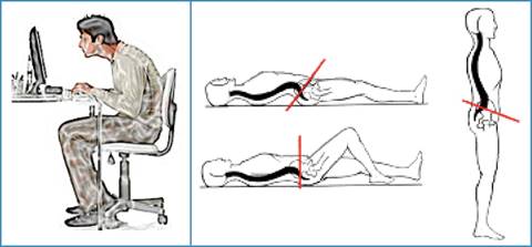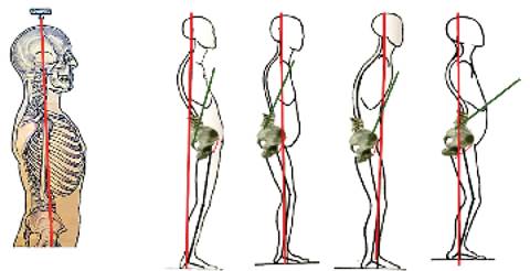 Figura 6: En la Figura de la izquierda se muestra un equilibrio sagital adecuado. A la derecha observe cómo se modifica el equilibrio según la inclinación pélvica ocasionada por trastornos posturales.