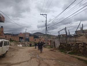 Las vías del barrio no cuentan con pavimentación, son vías o caminos de tierra que están en mal estado y la entrada y salida de vehículos pesados por toda la calle principal del barrio hacen que las vías de acceso se deterioren aún más; generando que el estado de las estas no sea óptimo para tránsito, como se ilustra en la imagen II lo cual es muestra los impactos perjudiciales en la calidad de vida de los individuos del barrio, la única respuesta única respuesta institucional que se ha tenido hasta el momento para esta problemática es dar inicio a la pavimentación de la ruta principal por el proyecto de vía perimetral de Soacha, la cual unirá los barrios Ricaurte, Magdalena y La Cagua 1er sector. Sin embargo, el primer obstáculo que se tiene es la conexión irregular que debieron realizar los residentes del barrio tras no poseer servicio de agua potable durante más de 7 meses, el tubo de la conexión es el que se ilustra en la imagen III, y es el tramo que se adelanta del proyecto perimetral (Ilustración 2 y Ilustración 3)