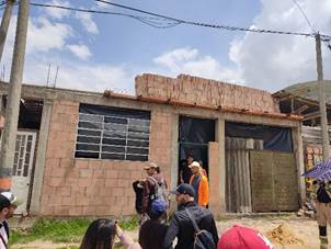 La participación ciudadana se realiza a partir del salón comunal el cual es centro de toma colectiva de decisiones para el desarrollo conjunto del barrio, en donde se tratan temas de interés social y se fortifica el tejido social desde este y la familia. Para estas reuniones cuentan con un salón comunal, que durante varios años solo contaba con 4 paredes como se ilustra en la imagen IV, este salón está construido con mucho esfuerzo de las personas residentes y gracias a la labor de liderazgo que ejerce Camilo Pérez actual presidente del JAC en el territorio, la cual ha despertado en la población el sentido de pertenencia por su barrio y el interés de trabajar colaborativamente, así se logró la construcción de la plancha para realizar las reuniones amenas y seguras de la lluvia y el sol como se puede evidenciar en la imagen V (Ilustración 4 y Ilustración 5)