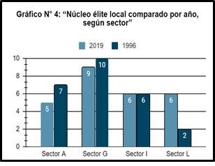 Gráfico 4: .Núcleo élite local comparado por año y sector.